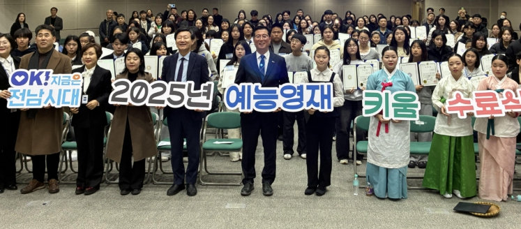[뉴스노크=김인호 기자] 전라남도는 도청 왕인실에서 2025년 예능영재 키움 수료식을 지난 22일 열어 1년간의 교육과정을 성실히 이수한 예능영재 학생들을 격려했다.