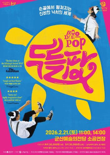 ‘두들팝’은 오는 21일 군산예술의전당 소공연장에서 11시, 14시 총 2회 진행되며, 티켓링크에서 R석 3만원S석 2만원으로 판매된다.