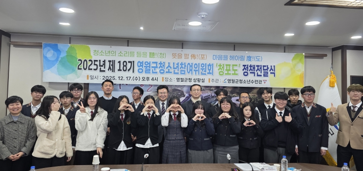 전달식에는 전대복 영월부군수, 신동훈 영월교육지원청 교육장, 남승모 영월문화관광재단 본부장, 전길자 영월군청 여성가족과장, 이두영 영월군청소년수련관장을 비롯한 관계자들이 참석해 청소년들의 정책 제안을 청취하고 의견을 나누는 시간을 가졌다.