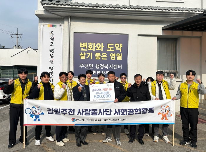 [뉴스노크=김인호 기자] 한국가스안전공사 에너지안전실증연구센터는 설 명절을 맞아 지역 내 소외된 이웃을 돕기 위해 온누리상품권 50만 원을 주천면사무소에 기탁했다.