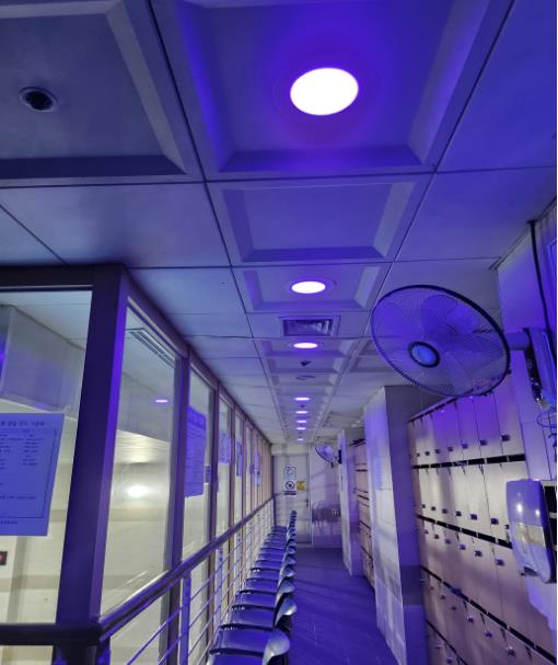 이번에 설치된 항균등은 인체에 영향을 줄 수 있는 자외선 살균 방식과 달리, 인체에 무해한 가시광(405nm 청색광)을 이용해 살균을 진행한다. 이 제품은 점소등 횟수에 맞춰 일반 조명과 항균 조명을 함께 사용하는 방식이다.