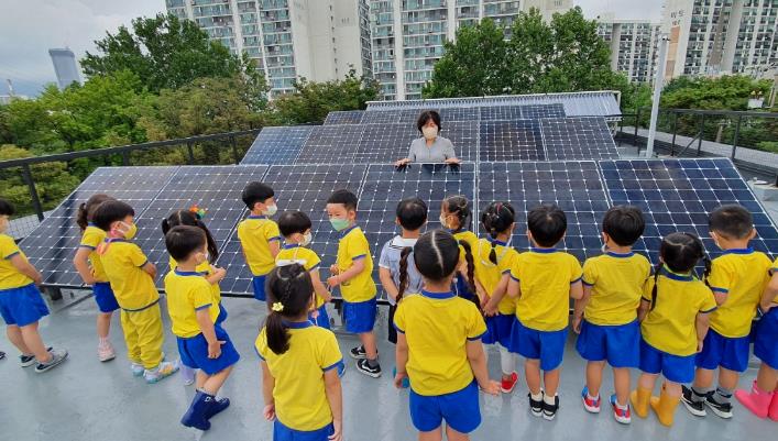 | ▲ 노원에코센터에서 태양광 발전에 대해 배우는 어린이들의 모습 |