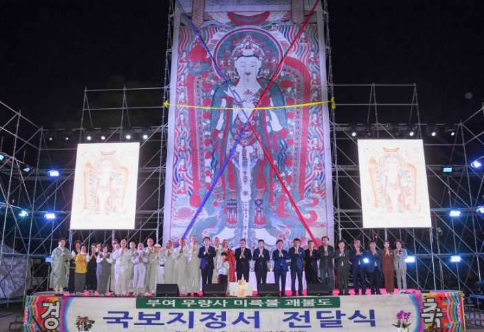 기념행사는 박정현 부여군수와 허민 국가유산청장, 박정주 충청남도 행정부지사, 김영춘 부여군의회 의장, 박수현 국회의원 등을 비롯한 주요 관계자들이 참석한 가운데, 부여군 충남국악단의 식전 공연을 시작으로 ▲괘불도 제막식 ▲국보 설명 및 경과보고 ▲국보 지정서 전달이 진행됐다.