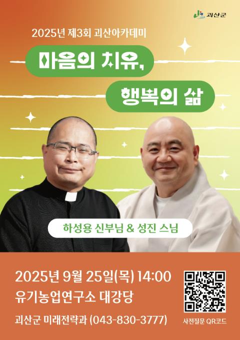 이번 아카데미는 ‘마음의 치유, 행복의 삶’이라는 주제로 진행되며, 하성용 신부와 성진 스님이 강연자로 나선다.