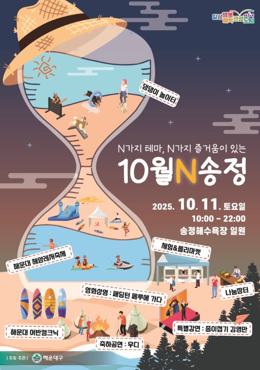 [뉴스노크=김인호 기자] 해운대구는 10월 11~12일, 해운대·송정해수욕장에서 ‘N가지 테마, N가지 즐거움이 있는 10월N 해운대·송정’을 개최한다.