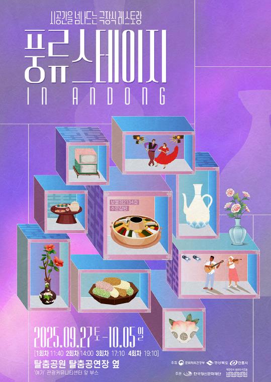 '풍류 스테이지 in Andong'은 ‘시공간을 넘나드는 5차원의 세계’를 콘셉트로 기획됐다. 전통의 미식과 현대적 공연예술이 시공간을 담은 5차원 디스플레이 속에서 어우러지며, 관람객은 전통과 현대가 교차하는 색다른 시간여행을 경험하게 된다. 이번 시범운영은 향후 문화도시 안동의 주요 사업으로 추진될 극장식 레스토랑 상설화의 출발점으로, 지역 문화 자산을 현대적으로 재해석하는 의미 있는 시도다.