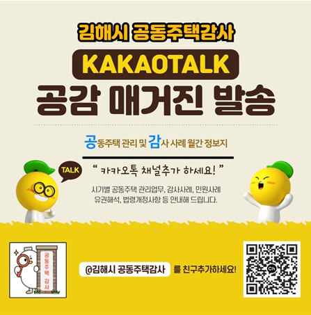 [뉴스노크=김인호 기자] 김해시는 공동주택 관리 과정에서 반복적으로 발생하는 경미한 절차 미이행을 예방하고, 관리주체의 법령 이해도를 높이기 위해 공동주택 관리·감사 월간 정보지인 ‘공감 매거진’을 발간한다고 18일 밝혔다.
