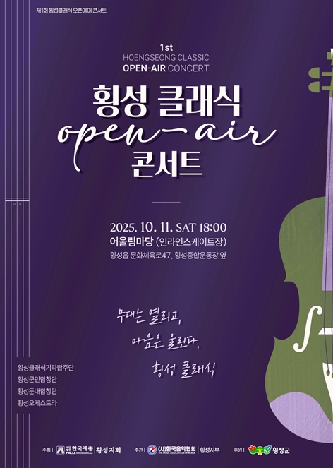 [뉴스노크=김인호 기자] 횡성군민에게 깊은 음악적 감동을 선사할 ‘제1회 횡성 클래식 오픈에어 콘서트’가 오는 11일 오후 6시, 횡성 어울림마당(인라인스케이트장)에서 열린다.