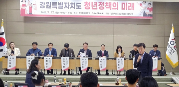 이어진 토론에서는 이승구 강원대학교 관광경영학과 교수가 좌장을 맡아 ▲박찬흥 강원도의회 경제산업위원장 ▲박주희 중앙청년재단 사무총장 ▲임재영 상지대학교 총학생회장 ▲안태환 강원 청년정책조정위원회 위원 ▲최진영 강원특별자치도 청년특별보좌관 ▲오석기 강원일보 편집담당 부국장 ▲임현식 강원특별자치도 일자리청년과장이 참여했다.