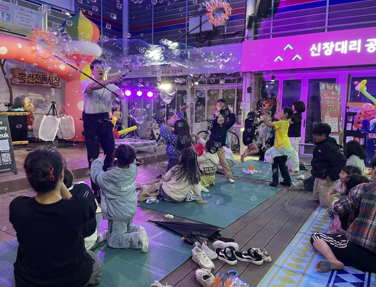 ▲ 홍천군 도시재생사업, 전통시장을 수놓은 ‘버블쇼’ |