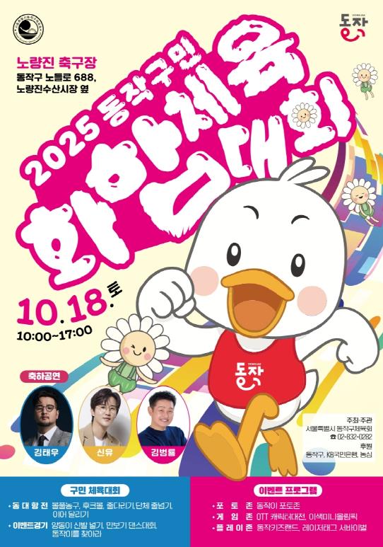 [뉴스노크=김인호 기자] 동작구가 오는 18일 오전 10시 노량진축구장(노들로 688)에서 ‘2025 동작구민 화합 체육대회’를 개최한다고 밝혔다.