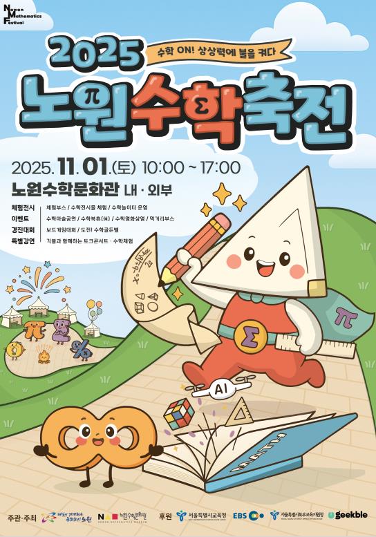[뉴스노크=김인호 기자] 서울 노원구는 오는 11월 1일 노원수학문화관 일원에서 ‘2025 노원수학축전’을 개최한다고 밝혔다.