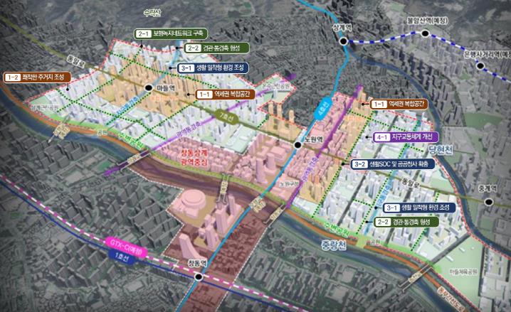 지구단위계획에는 S-DBC와 창동아레나로 대표되는 창동-상계 광역중심을 비롯하여 ▲노원역 ▲마들역 ▲하계역 ▲은행사거리역(동북선, 개통예정) 등지가 복합정비구역으로 설정됐다. 이와 함께 생활SOC 확충, 보행-녹지 네트워크를 포함한 보행환경 개선 등이 변경 사항으로 고시됐다.