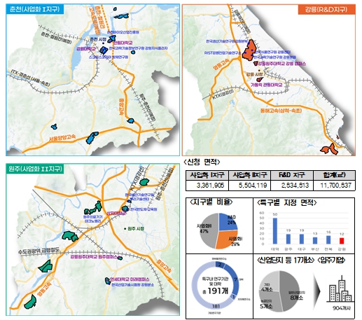 도는 그동안 연구개발특구 지정 요건을 충족하지 못해 연구개발특구 지정에 도전조차 할 수 없었으나 강원특별법 특례를 통해 지정 요건이 완화되면서 신청이 가능해졌다.
