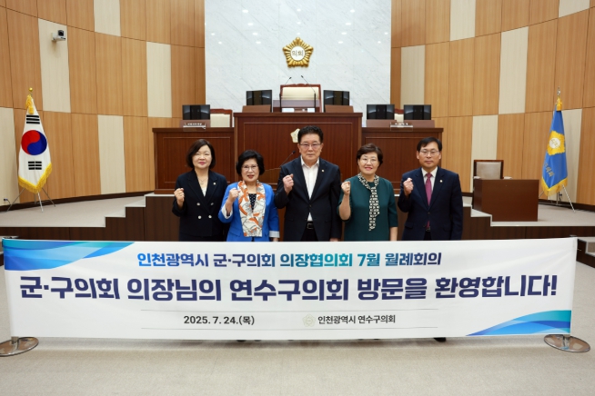 [뉴스노크=김인호 기자] 연수구의회는 지난 24일 의장실에서 인천광역시 군·구의회 의장협의회 7월 월례회의를 개최했다.