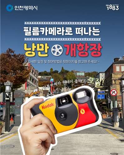 [뉴스노크=김인호 기자] 인천광역시는 오는 10월부터 11월까지 1883개항살롱에서 ‘필름카메라로 떠나는 낭만 개항장’이라는 시민참여 행사를 개최한다고 밝혔다.