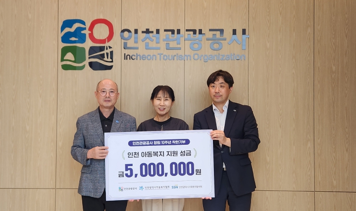 [뉴스노크=김인호 기자] 인천관광공사가 창립 10주년을 맞아 인천지역 아동복지 지원 성금 500만원을 인천아동복지협회에 전달했다.