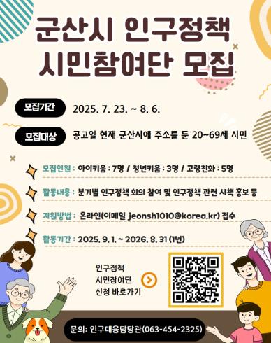 ▲ 군산시, 인구정책 시민참여단 모집 |