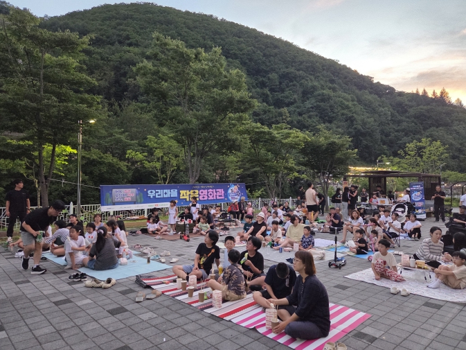 연신 많은 비가 내린 후 찾아온 무더위에 외출도 꺼려지는 지금 저녁 시간에 선선한 바람 맞으며 마을 앞 공원에서 가족들과 함께 무더위를 날리는 문화행사였다.