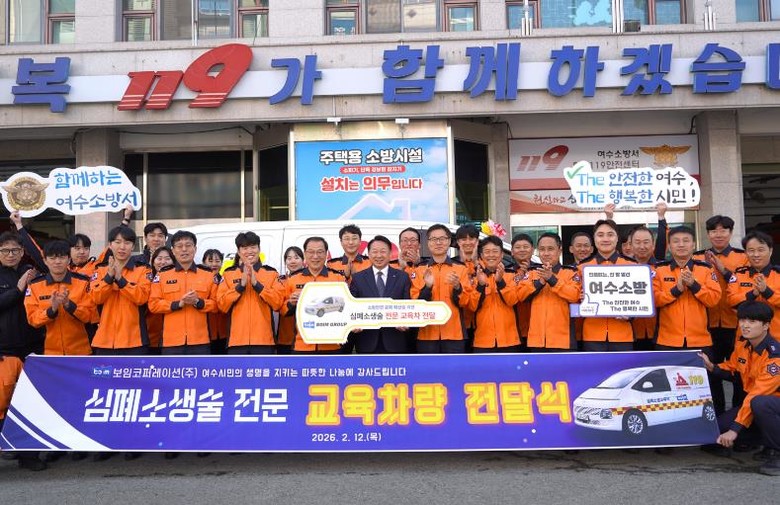 [뉴스노크=김인호 기자] 여수소방서는 2월 12일, 보임그룹 한문선 회장의 기부로 마련된 심폐소생술 교육차량 전달식을 개최했다.