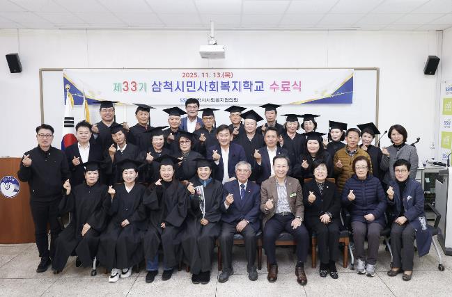 김문호 회장은 “삼척시민사회복지학교가 사회복지에 대한 기본적인 이해를 높이며 복지 비전에 대한 공감대 형성과, 함께하는 지역공동체를 만들어가는 데 기여하고 있다”며, “33기 수료생들도 지역사회에서 꾸준히 역할을 해주기를 바란다”고 전했다.