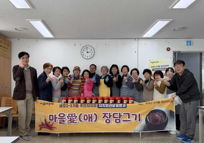 [뉴스노크=김인호 기자] 서울 성동구 금호2-3가동 주민자치회 자치회관운영분과는 지역 주민들과 함께하는 발효식품 만들기 체험으로 ‘마을애(愛) 장담그기’행사를 지난 3월 11일 진행했다.