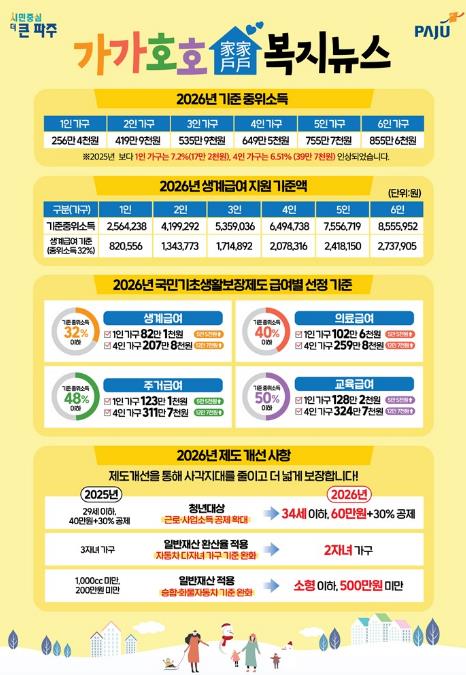[뉴스노크=김인호 기자] 파주시는 2026년 복지제도가 달라짐에 따라 완화된 복지 정보를 제공하는 ‘가가호호 복지뉴스’우편물을 발송했다.