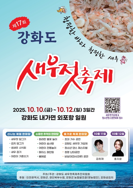 [뉴스노크=김인호 기자] 인천광역시는 제17회 강화도 새우젓 축제가 오는 10월 10일부터 12일까지 3일간 강화군 내가면 외포항 일원에서 열린다고 밝혔다.
