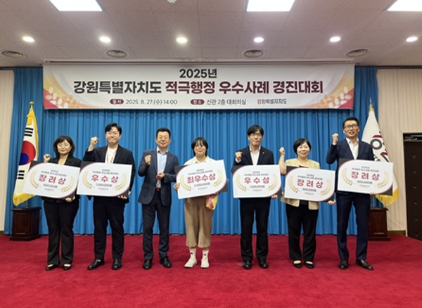 [뉴스노크=김인호 기자] 강원특별자치도는 8월 27일 도청 신관 대회의실에서 도, 시군, 지방공공기관 관계자가 참석한 가운데 '2025년 적극행정 우수사례 경진대회'를 개최했다.