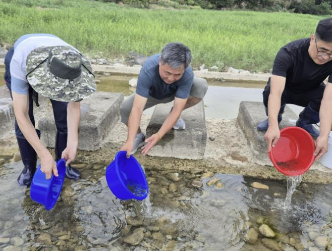 [뉴스노크=김인호 기자] 삼척시는 내수면 수산자원 회복과 생태환경 보전을 위해 8월 26일 오십천(가람영화관 뒤편)에서 버들치 1만 마리를 방류했다.