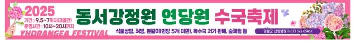 2021년 강원특별자치도 1호 지방 정원으로 등록하고 운영 중인 영월 동서강정원 연당원은 30만 본의 수목 및 초화류가 식재되어 계절별 다양한 볼거리를 제공하고 있으며, 그중 3,000본이 식재된 수국을 활용하여 금 년 수국 축제를 개최한다.
