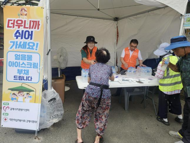 이번 쉼터는 무더위에 지친 시민이나 관광객들이 잠시나마 더위를 피할 수 있도록 마련된 공간으로, 자원봉사자들과 함께 시원한 얼음물과 아이스크림, 부채 등을 제공하며 온열질환 예방 활동을 펼치고 있다.