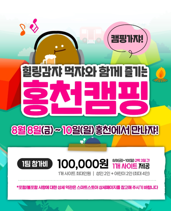 저녁 시간에는 복불복 감튀뽑기 이벤트, 유명 유튜버 ‘흥나는 캠핑 따식’과 함께하는 오-감자 캠핑 토크콘서트, 색소폰와 7080 포크송 공연 등 한여름 밤의 추억을 선사할 프로그램도 이어진다.
