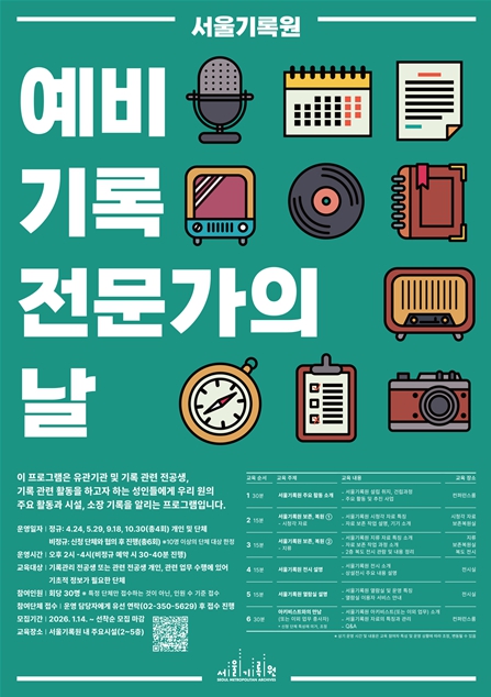 이와 함께 기록 분야 전공자를 위한 '예비 기록 전문가의 날'은 4월·5월·9월·10월 마지막 주 금요일 운영되며, '기록 활동가 양성과정' 등 전문교육도 연중 추진된다. 각 프로그램의 세부 일정과 참여 방법은 서울기록원 누리집을 통해 확인하거나 전화 문의를 통해 안내받을 수 있다.