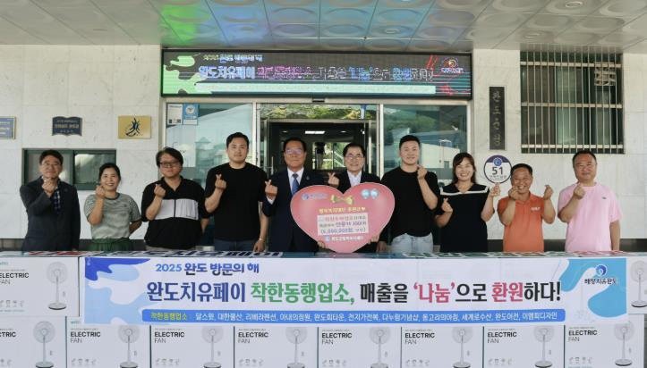 물품은 ‘완도 치유 페이’를 통해 발생한 매출 일부로 마련한 선풍기 100대(600만 원 상당)이다.