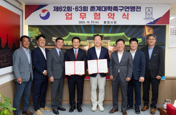 [뉴스노크=김인호 기자] 통영시는 지난 22일 2026~2027년'제62회·63회 춘계대학축구연맹전'유치 성공에 따른 업무협약을 체결하고 성공적인 대회 운영을 위해 상호 간 적극 협력하기로 밝혔다.