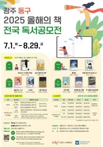 [뉴스노크=김인호 기자] 광주 동구는 책과 함께 소통하며 행복한 인문도시를 조성하고자 2025 ‘올해의 책’ 전국 독서공모전을 개최한다고 밝혔다.