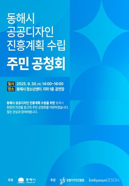 [뉴스노크=김인호 기자] 동해시는 시민과 함께하는 열린 정책 수립을 위해 '동해시 공공디자인 진흥계획(안)' 공청회를 오는 9월 30일 오후 2시, 동해시 청소년센터 1층 공연장에서 개최한다고 밝혔다.