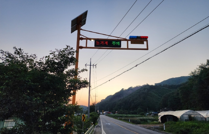 IoT 기반 농기계 사고 감지 시스템’은 농기계에 부착한 단말기와 주행 안내 표지판 사이 양방향 통신으로 전광판을 통해 차량 운전자에게 안전운전을 유도할 수 있다.