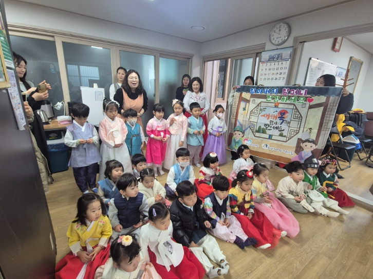 [뉴스노크=김인호 기자] 설을 맞아 화랑 리버빌 어린이집 원아들이 고사리 같은 손을 모아 어르신들께 정성껏 절을 올렸다. 경로당에는 아이들의 맑은 인사와 어르신들의 따뜻한 덕담이 오가며 명절다운 온기가 가득했다.