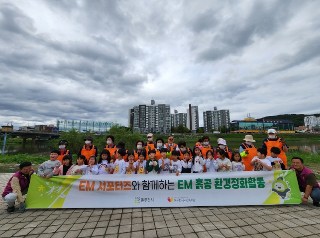 [뉴스노크=김인호 기자] 동두천시는 지난 14일 신천교 부근에서 동두천시노인복지관 EM서포터즈 어르신 15명과 관내 좋은열매어린이집 원아 18명이 참여한 가운데 ‘EM 흙공 던지기’ 행사를 진행했다.