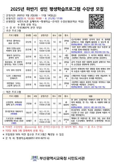 ▲ 부산교육청 부산시민도서관, 2025년 하반기 평생학습 프로그램 운영 |