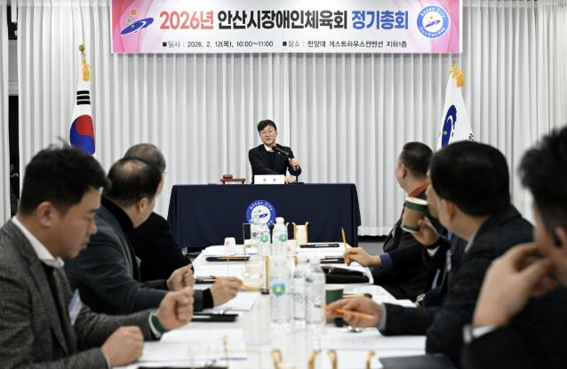 이민근 안산시장을 비롯해 임원, 가맹경기단체 대의원 등 80여 명이 참석한 이날 정기총회는 신임 임원 위촉패 수여식으로 시작됐다. 이어 ▲규정집 개정(안) ▲2025년도 수입 ․ 지출 결산 ▲2026년도 사업계획(안) 및 수입·지출 예산 승인 등 안산시장애인체육회의 안정적인 운영과 발전을 위한 주요 안건들이 차례로 상정되며 원안대로 의결됐다.