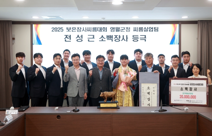 [뉴스노크=김인호 기자] 영월군은 2025년 7월 11일 영월군청 상황실에서 “위더스제약 2025 보은장사씨름대회” 소백급 장사 등극을 기념하는 봉납식을 개최했다.