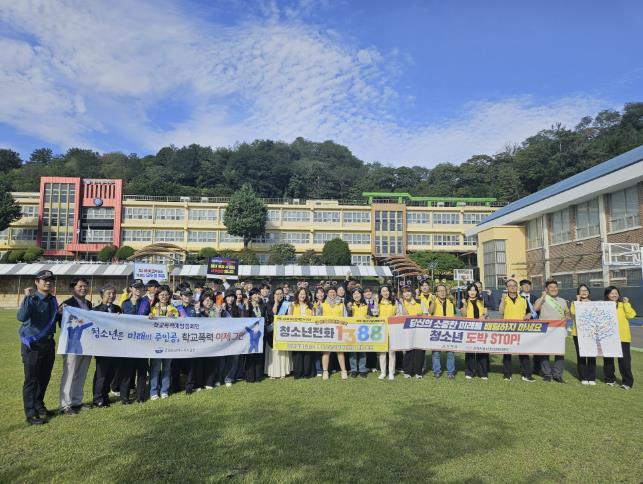 특히 청아중학교에서 진행된 캠페인에는 삼척시청, 삼척교육지원청, 삼척경찰서, 삼척시정신건강복지센터, 청아중학교 학생자치회가 함께 참여해 지역사회 내 청소년 보호 인프라를 한층 강화했다.