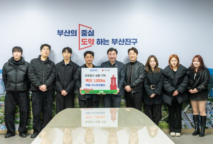 [뉴스노크=김인호 기자] 부산 부산진구은 1월 14일, ㈜누아르헤어(총괄대표 송강우)로부터 백미 1,000kg를 기탁받았다고 전했다.