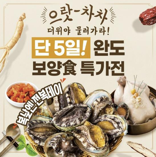 '복날엔 전복, 전복 데이 완도 보양식 특가전'은 7월 14일부터 18일까지 진행되며, 30% 할인 쿠폰을 제공한다.