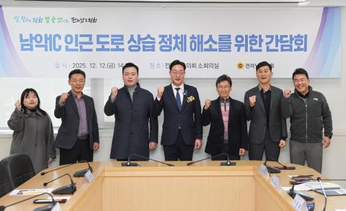 [뉴스노크=김인호 기자] 나광국 전남도의원(무안2·더불어민주당)이 12월 12일 도의회 소회의실에서 주최한 간담회를 통해 무안군 남악오룡신도시 주민의 숙원인 남악 IC 인근 교통체증의 구체적 해결 방안과 시기가 논의됐다.