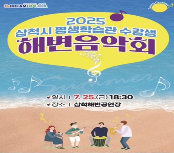 [뉴스노크=김인호 기자] 삼척시 평생학습관 200여명의 수강생이 만드는 한 여름밤 바다 위에 울리는 음악축제 “2025년 삼척시 평생학습관 수강생 해변음악회”를 오는 7월 25일 저녁 6시30분 삼척해변 공연장에서 개최한다.