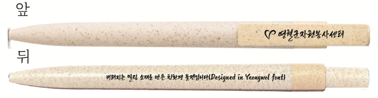이번에 제작된 볼펜은 밀짚을 원료로 사용해 플라스틱 사용을 줄인 친환경 제품이다. 여기에 영월군이 제작한 전용 서체 ‘영월체’를 적용해, 기능적 친환경성과 함께 지역 고유의 문화적 가치를 동시에 담았다.